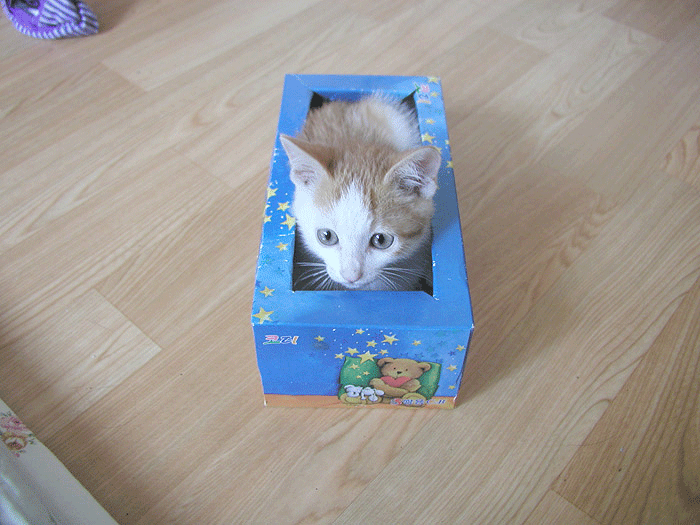 크리넥스 티슈 다쓰고 남은 빈통에 자꾸 발을 집어 넣길래 가위로 입구를 넓혀 줬더니 아주 좋아서 난리네요.