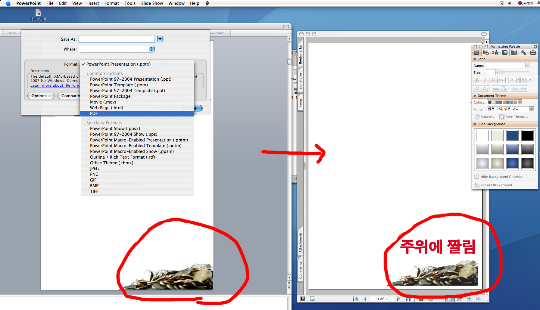 쿼억>PDF, 파워포인트>PDF.변경시 짤리는...