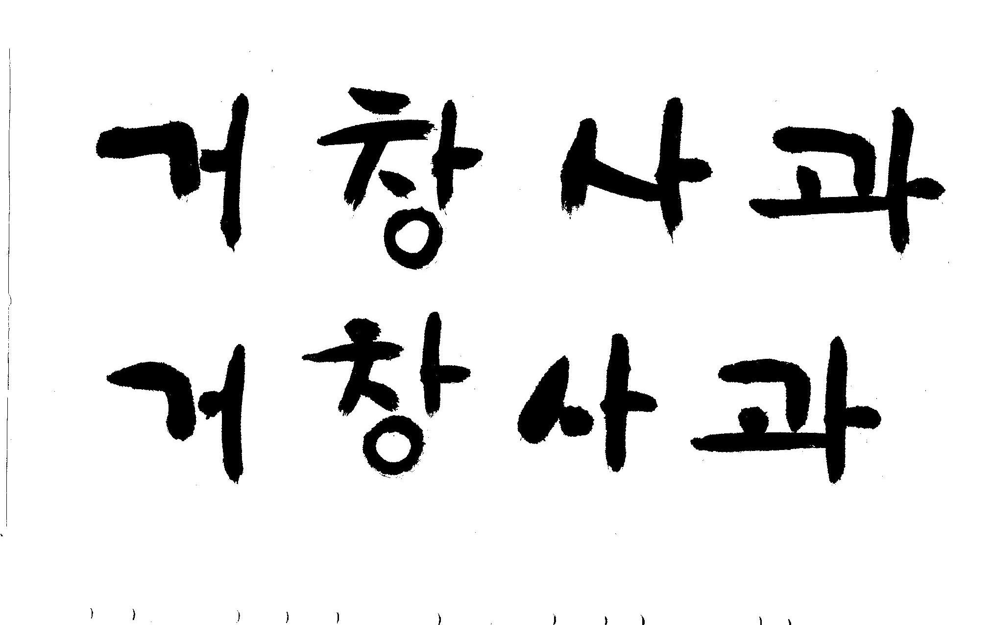 캘리 부탁드립니다. 김철호 일반 0 10142 2008.12.29 16:02 > > 안녕하세요? > 전문대 졸업하고 편집일 하다가 > 얼마전에 패키지쪽으로 이직했습니다. > '거창사과'라고 박스 디자인 주문이 왔는데요 > 일반적인 서체를 사용하니 기존 박스랑 별 차이가 없네요 > 많이 바쁘시겠지만 '거창사과' 캘리 부탁드립니다. > 유용하게 쓰시길..